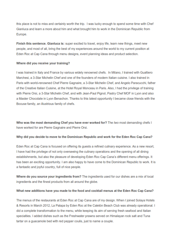 “Gianluca was raised in Northern Italy, and from an early age began absorbing the lessons of true Italian cooking. His approach emphasizes freshness and simplicity, so that dishes offer exquisite flavor. The result is both rustic and elegant,” Lama said. “With Gianluca leading Andrea’s culinary team, we expect that it will be one of the finest Italian restaurants on the coast.”
