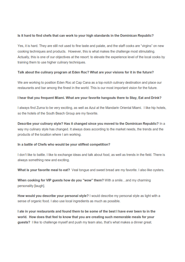He seems quite adventurous when it comes to traveling in other countries and tasting different dishes. But he stays faithful to his philosophy in the creation of dishes _ they should be simple.